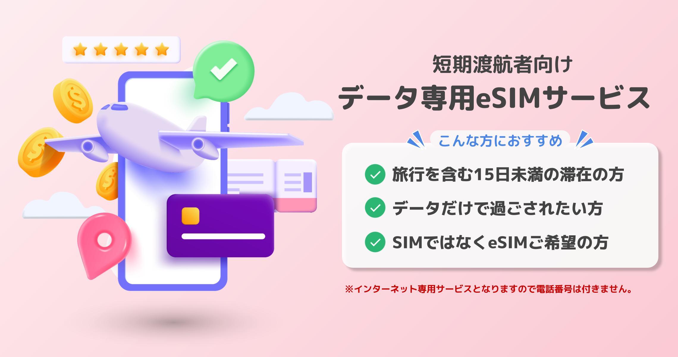 15日未満の短期渡航者向け データ専用eSIMサービスのご案内を開始しました。