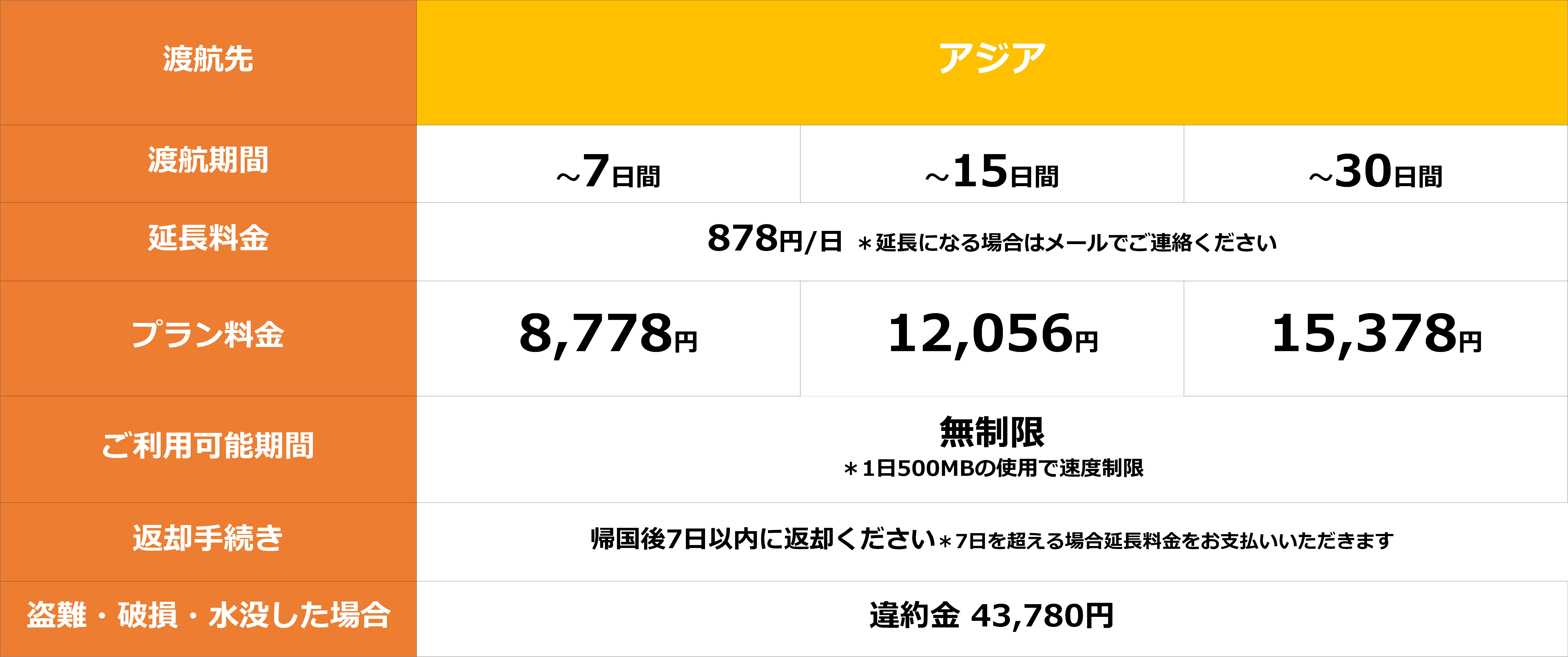 ※30日間のご利用料金 + SIMカード代金 + 回線開通手数料+国内配送料